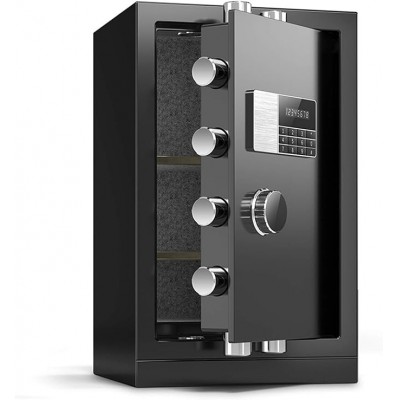 Fuerte y seguro: la caja fuerte del hogar está hecha de estructura de pared de acero sólido reforzado. Tiene pernos de bloqueo de muebles, manipulación de puertas de acero y manipulaciones, cardini a prueba de usos pesados, por lo que es una prueba de manipulación y garantiza que nadie pueda abrir la puerta sin una contraseña o contraseña autorizada.