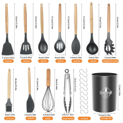 Set de herramientas de cocina, hicoosee 22 piezas sin cucharones de silicona de bpa con mango de mad