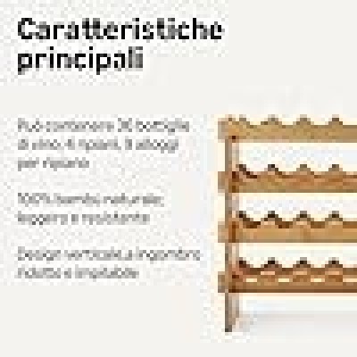 página de título > Hogar y cocina > Amazon Basics Racks apilables en bambú, capacidad 36 botellas, natural