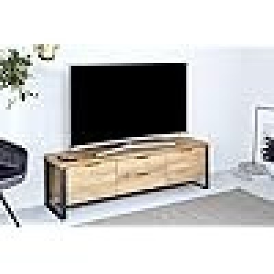 Foluban - Soporte para televisión de hasta 165 cm, en madera rústica y metal, con estantes, TV Indus