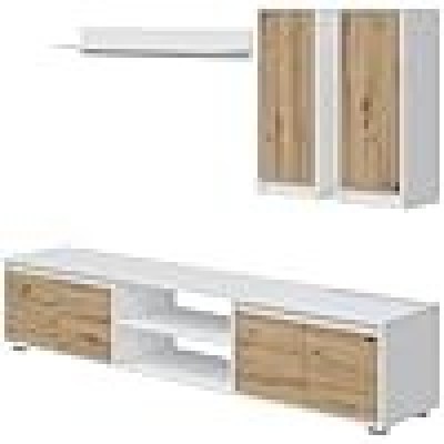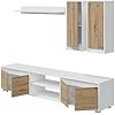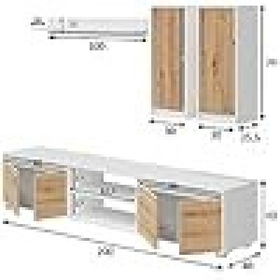 Pared equipada - sala de estar, sala de estar multipropósito, composición para la sala de estar moderna, 200x40h14 cm, blanco y roble