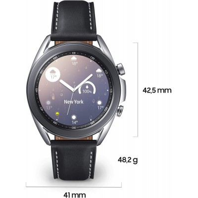 Samsung Galaxy Watch3 Bluetooth Smartwatch, estuche de acero de 41 mm, correa de cuero, detección de