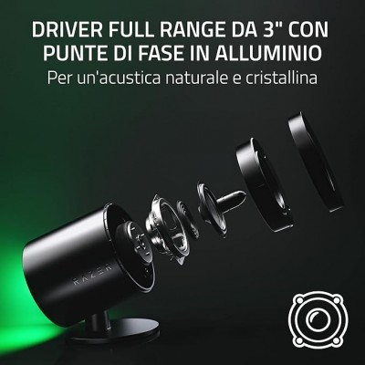 Illuminazione Razer Chroma RGB a proiezione posteriore per il massimo di immersione e personalizzazione: Amplifica l'immersività della tua postazione con le zone di illuminazione a proiezione posteriore su entrambi gli altoparlanti Scegli tra schemi infiniti e migliora la tua immersivitá con effetti di luce dinamici mentre giochi