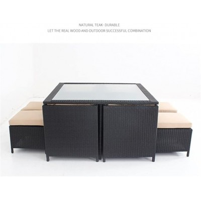 Mesa de comedor de Kccuzo y sillas al aire libre en ratán sintético, combinación de nueve piezas, mu